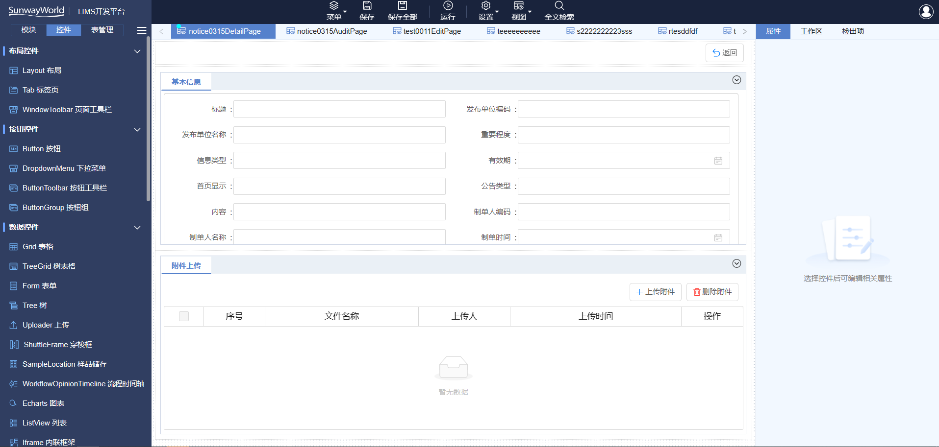 平臺內(nèi)置LIMS產(chǎn)品的所有界面控件,分為布局控件、按鈕控件、數(shù)據(jù)控件、輸入控件、導(dǎo)航控件等,通過拖拽方式即可繪制出界面,方便項目實施,客戶后續(xù)可自行維護,方便快捷。