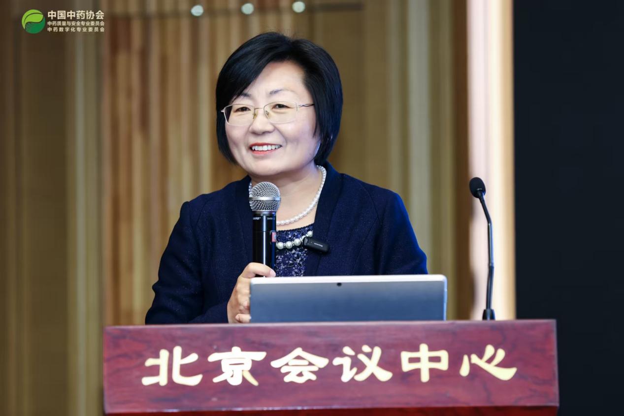 在中藥數字化及智能制造分論壇中,三維天地副總裁張金平女士作《人工智能在藥檢行業(yè)實驗室應用實踐》主題報告。