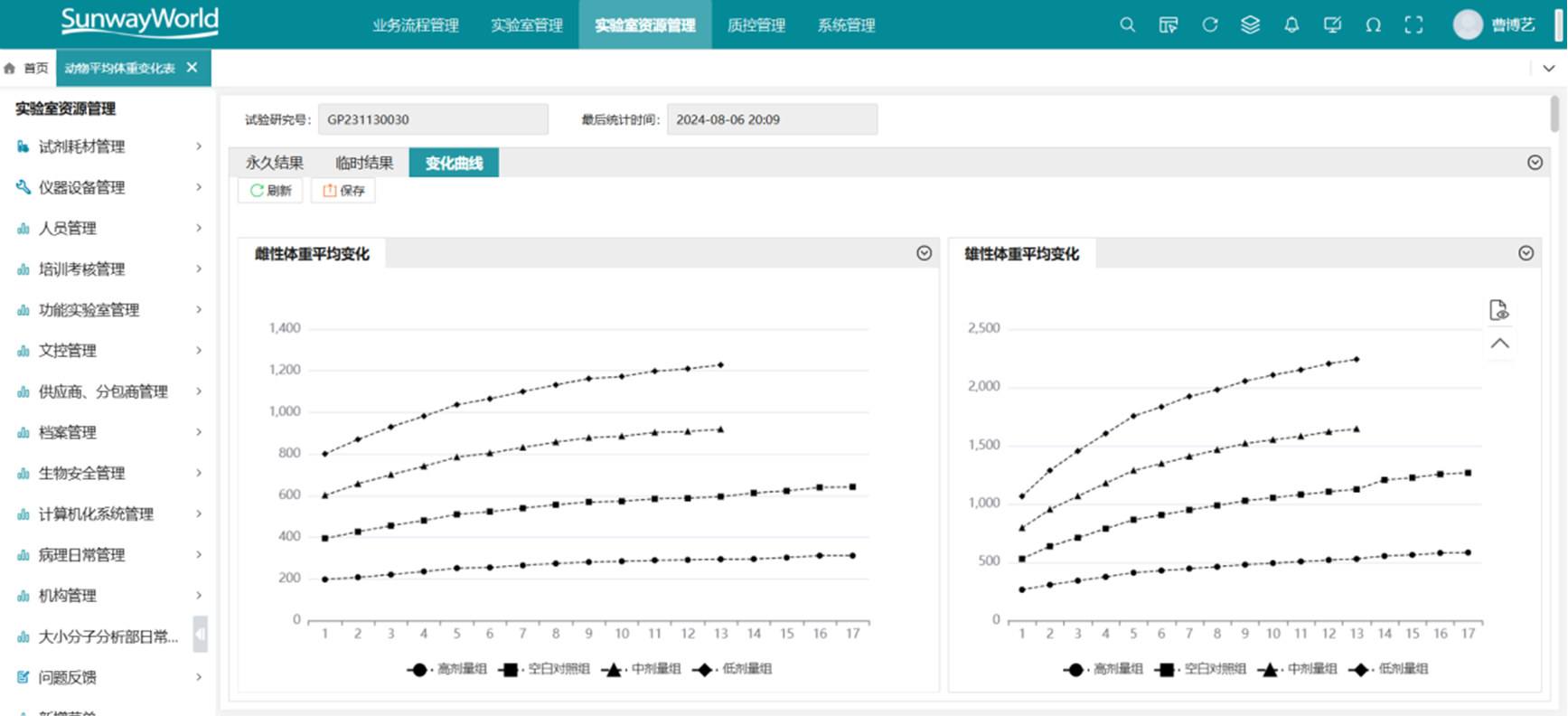 GLP系統(tǒng)聚焦毒理學(xué)、藥代動(dòng)力學(xué)、藥效學(xué)等臨床前研究流程的管理,支持試驗(yàn)設(shè)計(jì)、動(dòng)物分組、劑量設(shè)置、給藥記錄、稱(chēng)重觀察等全過(guò)程數(shù)據(jù)采集。系統(tǒng)可自動(dòng)采集動(dòng)物體重、攝食、給水等信息,支持項(xiàng)目分層管理與權(quán)限控制。動(dòng)物信息、籠位記錄、用藥批次可追溯到單體,滿足GLP實(shí)驗(yàn)數(shù)據(jù)可追溯、可驗(yàn)證的核心要求。與SDMS和ELN集成后,實(shí)現(xiàn)數(shù)據(jù)的集中管理、報(bào)告生成與GLP合規(guī)審計(jì)的閉環(huán),提高藥物臨床前研究的科學(xué)性與合規(guī)能力。