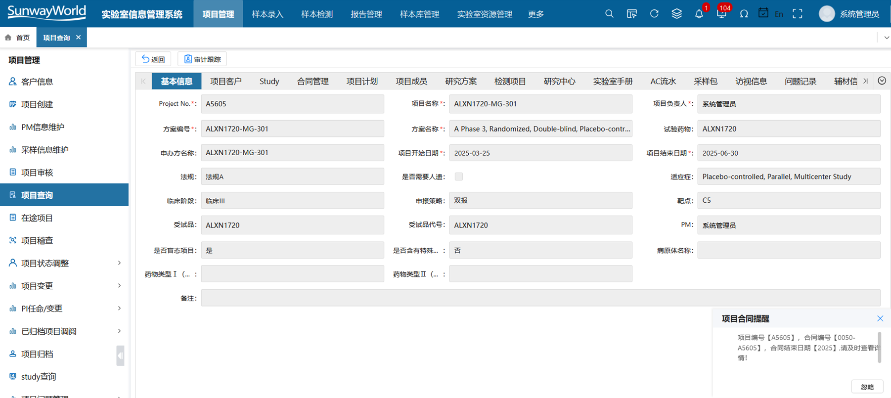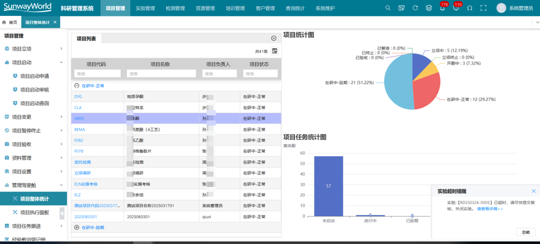 研發(fā)一體化平臺(tái)包含了:研發(fā)產(chǎn)品生命周期管理系統(tǒng)(PLM)、科研項(xiàng)目管理系統(tǒng)(RDMS)、科研過(guò)程記錄管理(ELN/LES)、臨床前研究合規(guī)系統(tǒng)(GLP)、臨床研究管理系統(tǒng)(GCP)、質(zhì)控實(shí)驗(yàn)室信息管理系統(tǒng)(LIMS)、科學(xué)數(shù)據(jù)管理系統(tǒng)(SDMS)、質(zhì)量管理系統(tǒng)、AI應(yīng)用平臺(tái)(SunwayLink)等。以下是主要軟件功能簡(jiǎn)介: